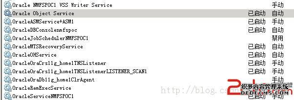 如图,截取的是11gR2下RAC其中一个节点的Oracle服务列表。