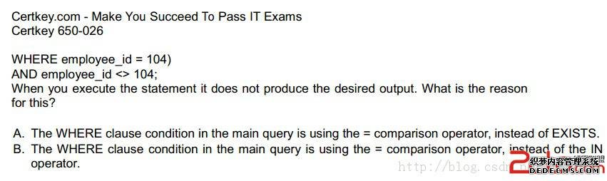 答案B把这语句改成:结果显示无记录,其实这语法是没问题的,只是where条件主查询字段顺序不匹配,所以答案B不正确