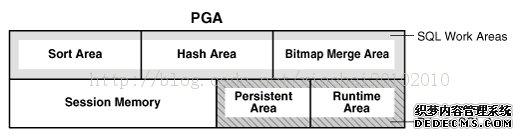 pga是被划分为很多不同的区域的,每个区域都有不同的目的功能。下面是一个专用服务器模式下pga的内存分配情况,并不是所有的组件都是必须存在的。