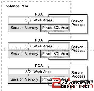 pga是一个内存堆,其中包含了被专用服务器或是共享服务器金曾锁需要的一些会话变量信息。服务器进程需要在pga中分配一些所需的内存结构。