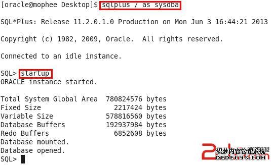 Oracle在$ORACLE_HOME/bin下提供许多对数据库进行操作的脚本,其中dbstart和dbshut可分别用来启动和关闭数据库。注意,这两个脚本已包含监听器的启动或关闭,但并未对EM进行相关的操作。使用如下命令: