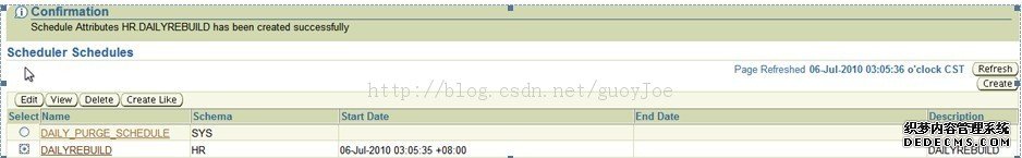调度程序是在Oracle 10g版本中引入的,在11g版本中得到了大大增强。较早的数据库版本通过DBMS_JOB功能提供作业调度功能。为了达
