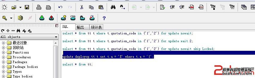 打开一个PL/SQL,执行update deployop.tt t set t.a = 'X' where t.a = '1';