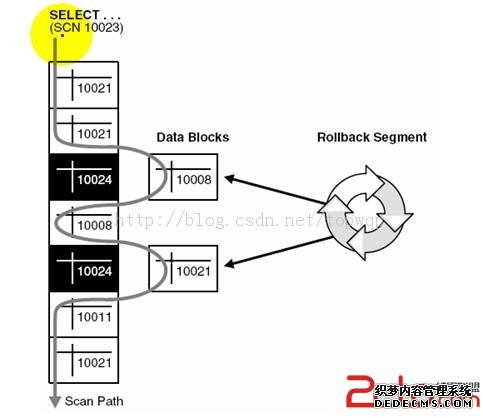 这个时候 ,有一个查询需要对这个表进行全表扫描(select * from table_name) , 开始执行查询的时候会有一个 SCN号,然后对这个表进行全表扫描,当扫描 的时候,oracle会用当前查询的SCN和这个表中每个数据的SCN号进行比较,如果这个数据的SCN小于<查询的SCN号,证明这个数据当前没有修改,如果这个数据的