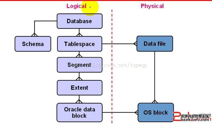 数据库包含有多个 tablespace 一个 tablespace包含一个或多个 datafiles ,一个表或者一个index 暂居一个segment