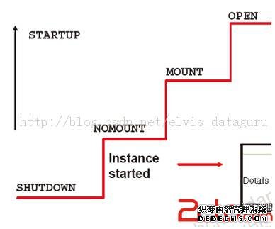 (1)开启实例分为nomount,mount,open三个阶段