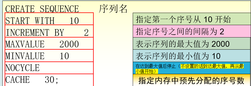 ③、创建:create sequence(前三个必须写)