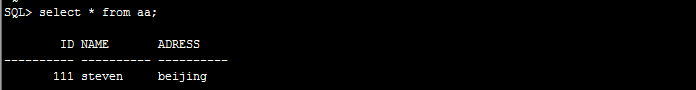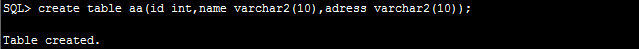 SQL> create table aa(id int,name varchar2(10),adress varchar2(10));
