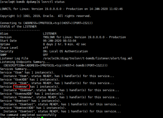 1.导入指定140服务器的实例名tbomnew,先查询一下这个服务器上的实例名,可以用监听查询,因为这个库中有很过实例名,所以要先导入所需要的实例名。