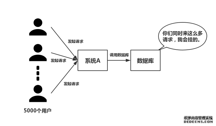 如下图所示,在大并发的情况下,所有的请求直接访问数据库,数据库会出现连接异常。这个时候,就需要使用redis做一个缓冲操作,让请求先访问到redis,而不是直接访问数据库。