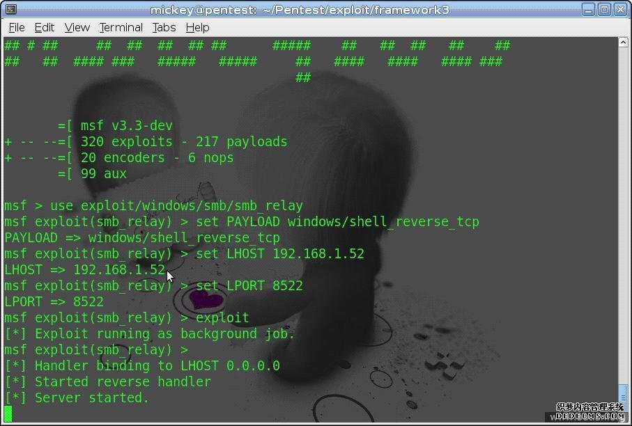 2.运行 metasploit,我选用的 PAYLOAD 是 shell_reverse_tcp,做好相应配置后,exploit.就能用 netstat 看到本地已经监听了 139 和 8522 端口了.