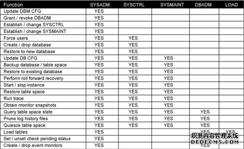 权限级别控制执行数据库管理器维护操作和管理数据库对象的能力。在 DB2 中共有 5 种权限: