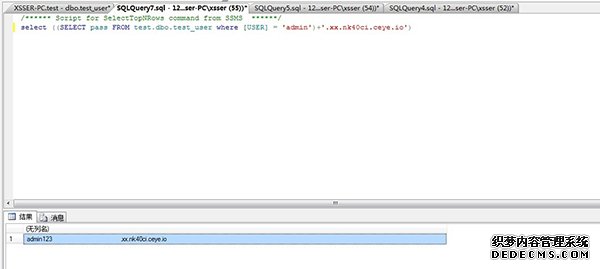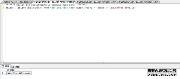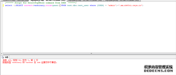 这个POC在数据库控制台执行的确是可以得到数据库中sa用户Hex编码之后的Hash的。但是实际要获得我们的test_user的表中的数据的时候,对POC需要一定的加工。