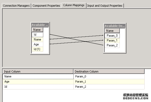 这里的参数值都是用?号来代替,之后在Column Mappings这个Tab中设置代替值实际代替的列,如下图: