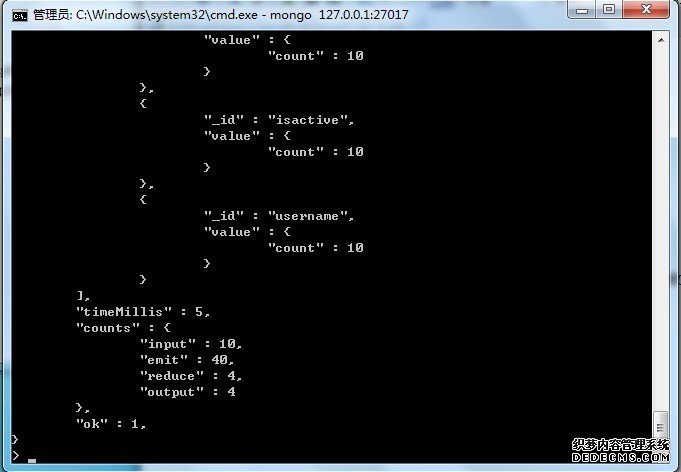 "emit" : 40,//在map函数中emit被调用的次数