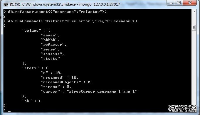 - db.runCommand({"distinct":"refactor","key":"username"})