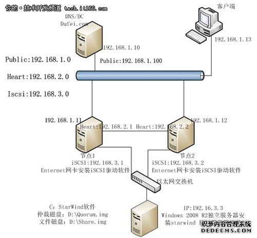 安装并配置Windows Server 2008 R2故障转移群集: