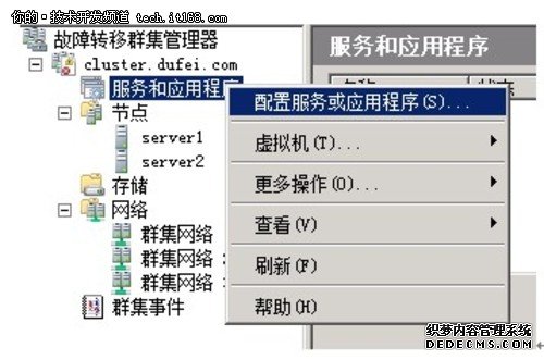 安装并配置MSDTC服务:方法是点击群集下的服务和应用程序-----配置服务或应用程序,如下图所示: