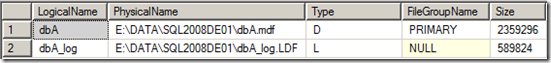 - Move 'dbA' To 'E:\DATA\SQL2008DE01\dbA.mdf',