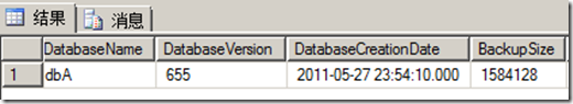 注:】在结果集中, SQL Server 2008/R2 比 SQL Server 2005 多一个列”CompressedBackupSize”。