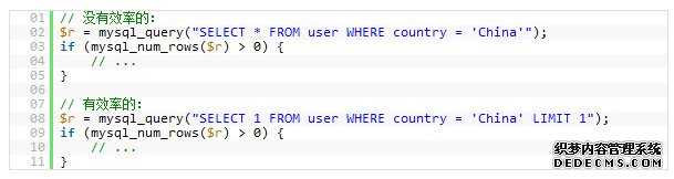 在这种情况下,加上 LIMIT 1 可以增加性能。这样一样,MySQL数据库引擎会在找到一条数据后停止搜索,而不是继续往后查少下一条符合记录的数据。