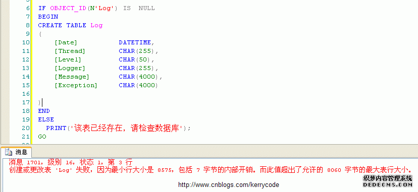 昨天一个同事突然问我,说他在SQL 2000数据库创建如下表的时候,突然碰到了下面一条警告信息。SQL脚本和警告信息如下: