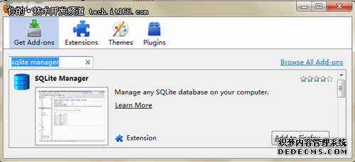 ▲图6. 使用Firefox的加载项管理器获取和安装SQLite Manager插件