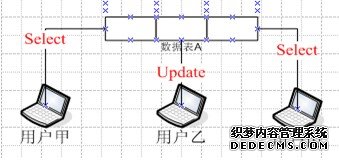 然后,用户乙又对数据表A发出了一个更新请求。此时用户乙的请求只有在用户甲的作业完成之后才能够得到执行。