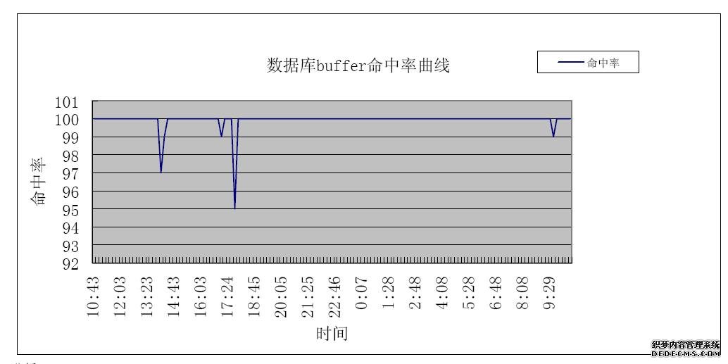 我们数据库的buffer命中率几乎接近100%,最低值在95%左右,这个比率是比较优化的。