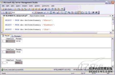 示例1定义了一个表值型函数,根据UserAccess表中的限制用户可以查看的内容,返回订单数量和订单的总收入。
