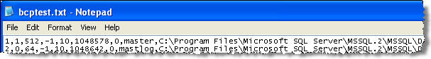 下面是一个示例命令,它将把系统文件表的结果输出到以逗号分割的文件bcptest.txt中。只需复制并把它粘贴到一个查询窗口中且执行这个查询。