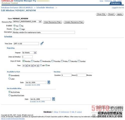 如果你创建新的资源计划,在“编辑窗口”屏幕,你需要将新的资源计划指派给有关的维护窗口,或使用DBMS_SCHEDULER包来完成指派。