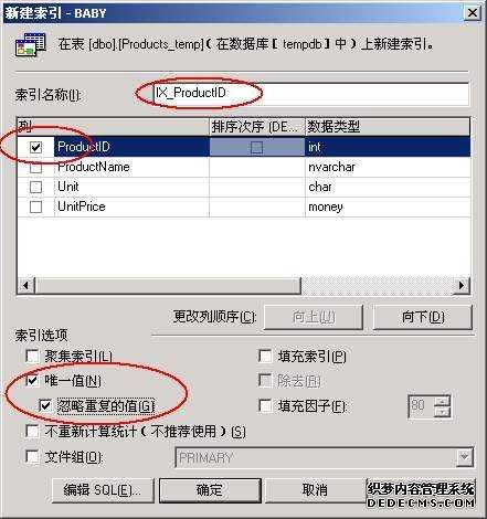 第二板斧——为该表加上索引,并使其忽略重复的值