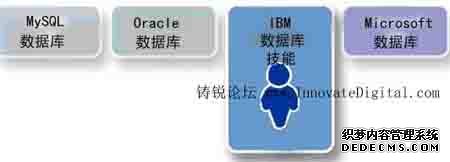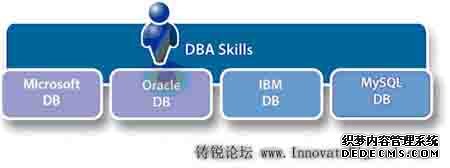 最好的可选之一是确定一个舞台,在那里DBA或应用开发人员磨练他们的与工作有关相对于与平台有关)的技能,而且确定哪些技能在同样的通用技术纵向层面上是可以转换的。例如,使用恰当的工具套件,擅长于ORACLE空间管理的DBA也能把自己的经验和技能应用在别的RDBMS平台上,IBM DB2,Microsoft SQL Server 或MySQL。这代表特定技能的扩展,而以前的趋势都是向纵深方向发展。