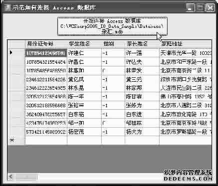 图4-9是程序范例CH4_DemoForm007.cs的执行画面,它示范如何连接至Access数据库C:\VCSharp 2005_IO_Data_Sample\Database\杂汇.mdb,并将此数据库的“学生”数据表的数据记录显示在DataGridView控件中。