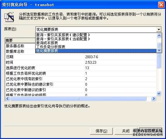 还可让SQL Server为你创建索引视图,它将作为向导输出内容的一部分提供。索引视图可用于多种场合。图B最后一部分包含了优化模式选项。注意如果选择彻底优化,那么整个过程会花费可观的时间,具体取决于工作文件的大小、记录数以及你准备分析的索引数目。