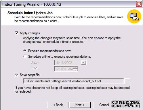 接着,你可选择是让SQL Server立即应用更改如图H所示),还是安排在以后某个时间进行。另外,还可将包含了推荐更改的一个脚本保存下来。
