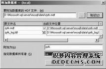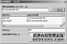 拷贝SQL Server 2000数据文件zytk.mdf到d:recovery下。在企业管理器中,右键数据库,选择所有任务→附加数据库。单击浏览"...")按钮选择要附加的数据库mdf文件d:recoveryzytk.mdf,发现日志文件是错误的如图1)。