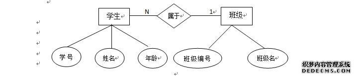 例如:一个学生属于一个班级,一个班级拥有多名学生,E-R图如下