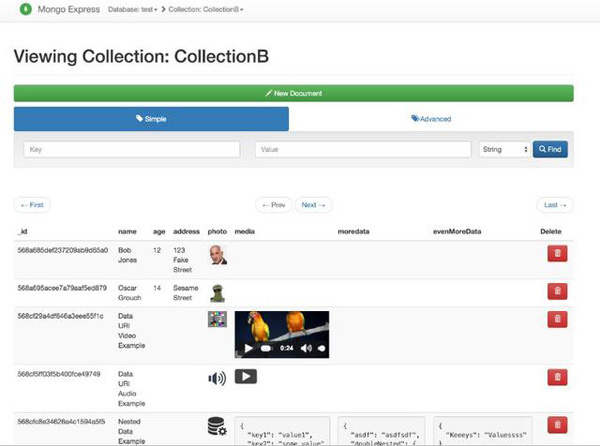使用Node.js,Express和Bootstrap3编写的基于Web的MongoDB管理界面。它允许连接多个数据库;查看/添加/删除数据库,集合和文档;预览音频/视频/图像资产;GridFS支持 - 添加/获取/删除难以置信的大文件;在文档中使用BSON数据类型,Mobile / Responsive - Bootstrap以及更多功能。
