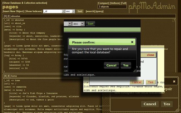 这听起来像phpMyAdmin工具。但是,phpMoAdmin也是PHP编写的但是可用于MongoDB。它基于Vork PHP框架。很轻巧,易于安装。它只有115KB的moadmin.php文件,用户可以放在网站的任何地方开始工作。