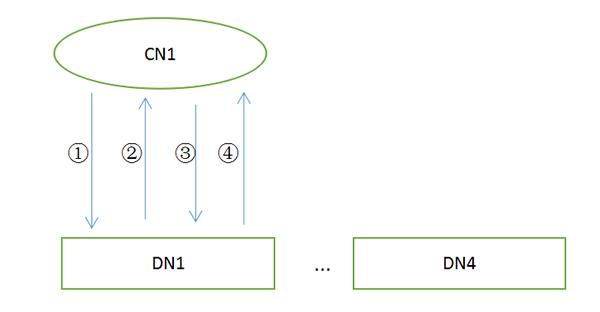 ①:CN prepare ->②:所有DN prepare ->③:CN commit->④:所有DN commit
