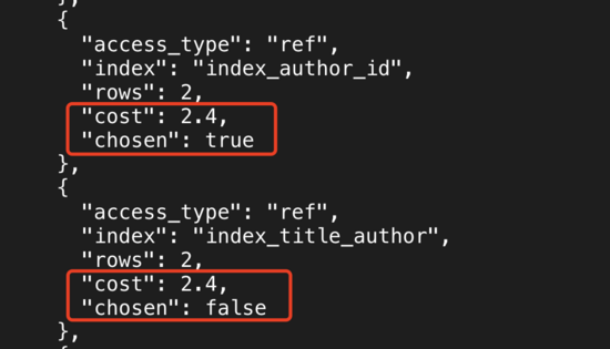 index_author_id和index_title_author的cost相等,MySQL会优先选择叶子块数量较少的索引。