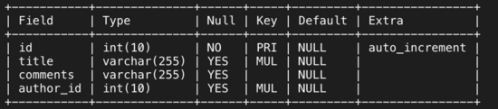创建新表tb_article,创建了两个索引:index_title、index_author_id,表结构如下: