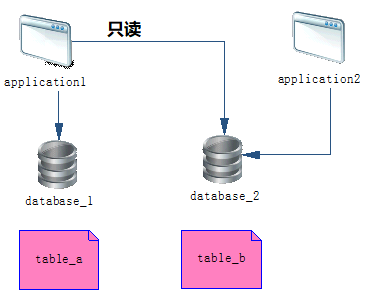 application1 要获取 database2 的数据,并不是通过接口来获取的,而是直连 database2 来获取,因此 application1 也具有 database2 库的读权限。