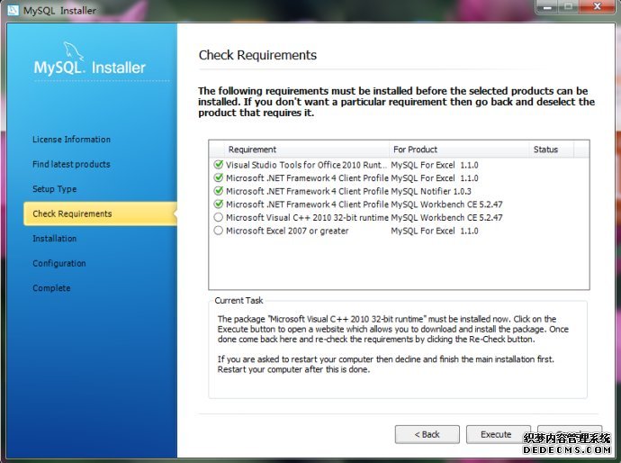 5、根据您所选择的安装类型,会需要安装一些框架framework),点击“Execute”安装所需框架,如图1-7: