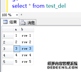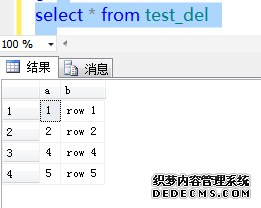 - create table test_del( a int identity,b char(10))
