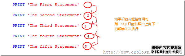在没有流程控制语句的情况下,T-SQL语句是按照从上到下的顺序逐个执行: