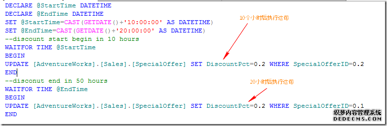 WAITFOR的功能可以实现更为复杂的业务逻辑,比如: