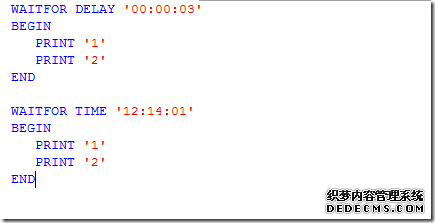 WAITFOR关键字允许指定语句在特定时间或是推迟特定时间执行。